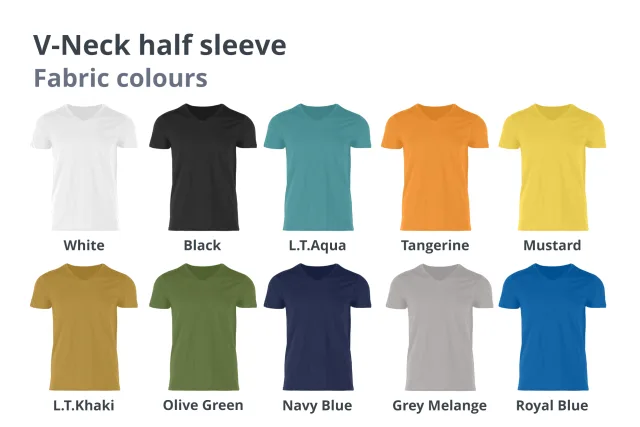 We offer a unisex V-neck Cotton Blend with 180gsm which looks sleek and comfortable while wearing with half sleeves.